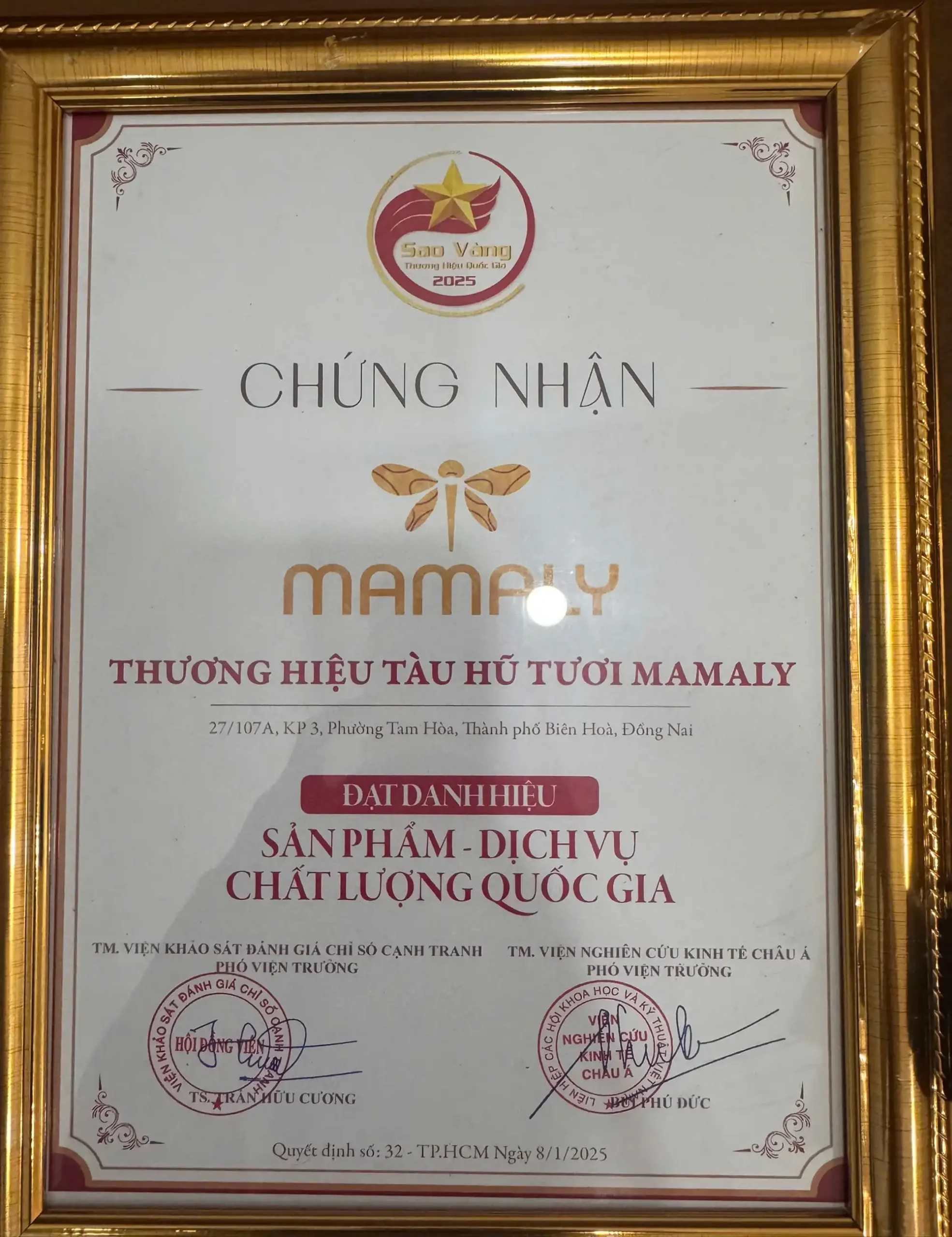 Lấy chất lượng làm nền tảng cho niềm tin, Mamaly áp dụng quy trình kiểm định chặt chẽ trong từng công đoạn, đạt nhiều chứng nhận uy tín. Không chỉ là món ngon quen thuộc, tàu hũ tươi Mamaly mang khát vọng đưa tinh hoa ẩm thực Việt vươn xa, lan tỏa hương vị thuần khiết ra thị trường quốc tế.